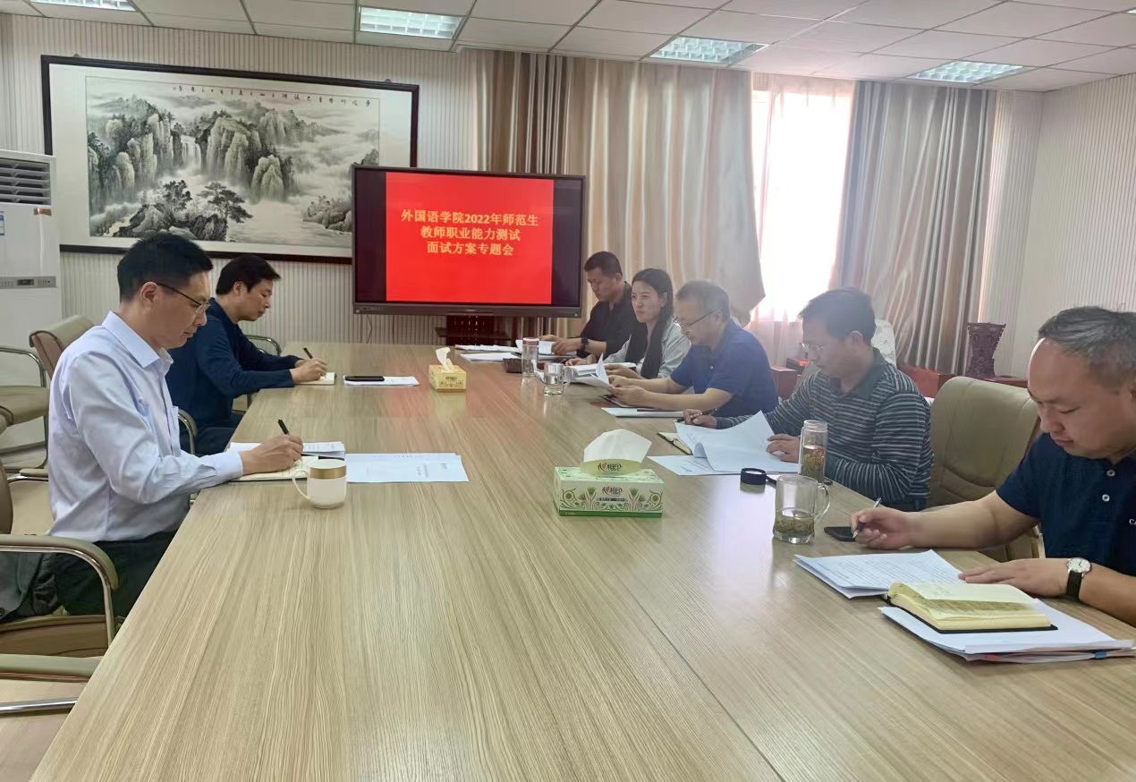 2022年师范生教育教学能力面试考核工作,4月11日上午,学院党委在人文楼5楼会议室针对师范生教育能力测试面试方案展开专题讨论。