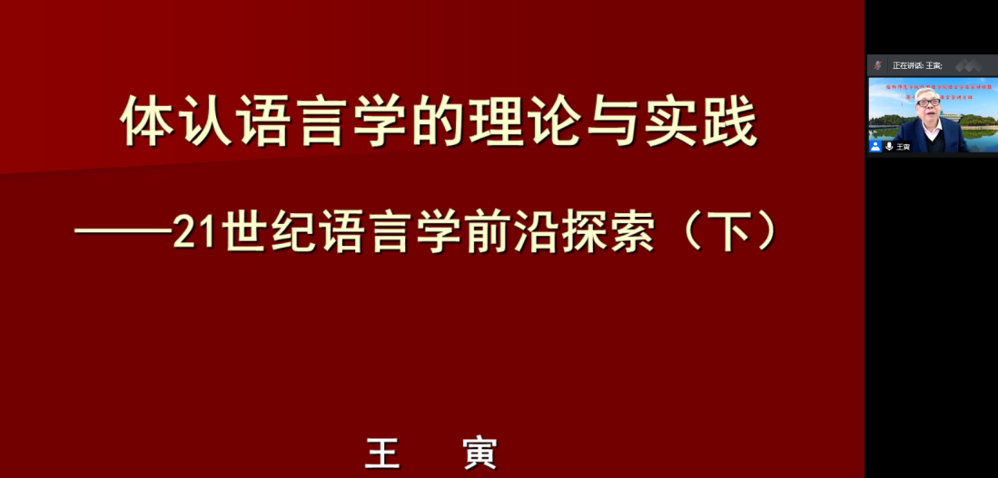 以“体认语言学理论与实践” 为主题开展语言学名家讲坛暨第十二期体认语言学讲习班活动。研习班邀请四川外国语大学博士生导师王寅教授做系列学术报告,分别以“体认语言学的理论与实践”、“体认语言学在翻译与英语教学中的应用”、“体认语言学与英汉词汇”等为主题探讨了体认语言学的前沿与现状以及体认语言学理论在教学中的应用。讲座采用现场和腾讯会议线上结合的方式开展,现场50余名师生和线下300余名听众共同聆听了讲座,每场讲座结束后,王寅教授都详细解答了与会师生和线上听众的问题。不少师生表示讲座提升了他们语言研究的兴趣和积极性,对营造91短视频