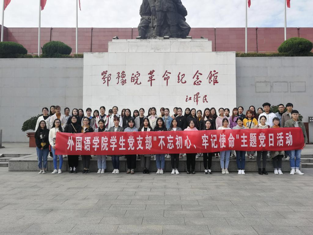 10月26日至27日,学院全体教工党员分别前往新县鄂豫皖苏区首府烈士陵园、鄂豫皖苏区首府革命博物馆、许世友将军故里、田铺大湾村创客小镇和光山县王大湾会议旧址、邓颖超祖居、司马光油茶园、文殊乡东岳村等地,通过实地参观、情景教学、现场研讨、重温入党誓词、聆听初心故事,大家深切感受到了先烈们坚守信念、胸怀全局、团结一心、勇当前锋的大别山精神,纷纷表示,要将秉承革命先烈的遗志,坚定时代信仰,在立德树人的实践中将红色基因传承下去,为我国的教育事业发展贡献自己的力量。