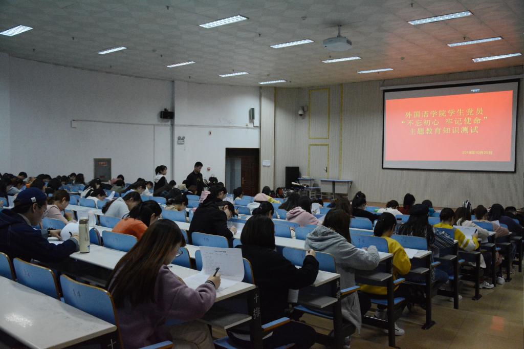 在人文楼报告厅组织开展了“不忘初心、牢记使命”主题教育应知应会知识集中测试测试活动,学院全体学生党员、预备党员和党员发展对象参加了测试。