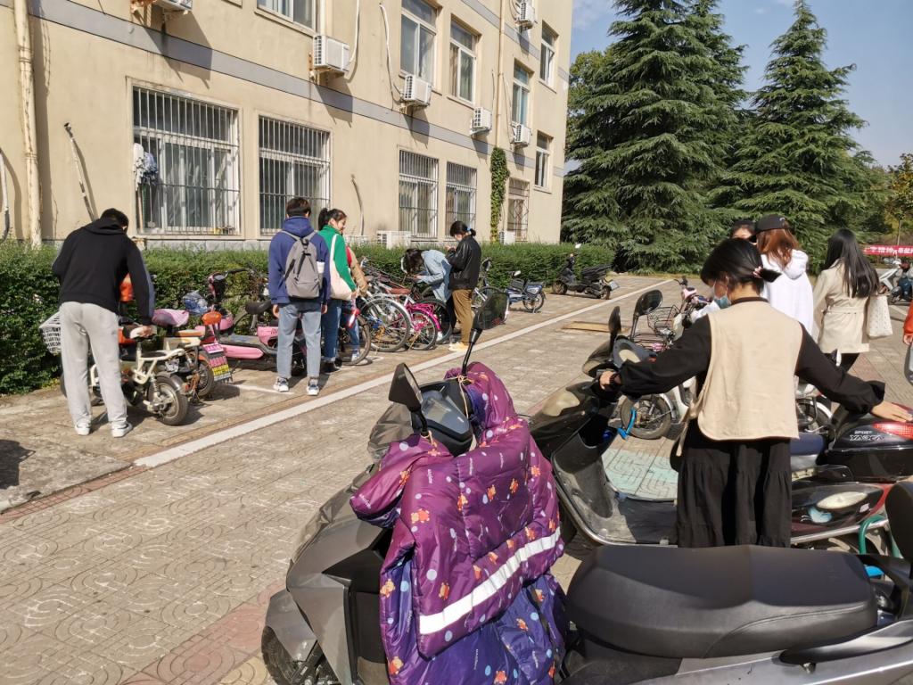 活动伊始,学员们针对校园内小型电动车及“萌小明"共享电动车的安全、规范使用问题,展开讨论并发表自己的见解与看法。随后,学员们自行组成若干小组,分别到人文楼前的停车区域、逸夫楼前的停车区域等地点,整理摆放车辆,同时对存在安全隐患的共享电动车,通过软件提出“申请维修”,并用便签纸进行注明车辆故障,方便其他同学后续的使用。