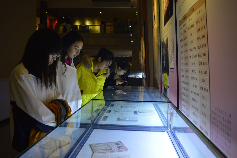 在解说员的带领下,师生们按照时间顺序,全方位了解到鄂豫皖革命根据地从形成、发展到壮大的全过程,其中丰富的历史实物和珍贵的影像资料,真实还原当时革命先烈艰苦卓绝的奋斗场景,让在场师生感受到不怕牺牲,勇往直前的革命大无畏精神。学子们纷纷在陈列柜前驻足,仔细阅读相关介绍和观察历史文物。来自2015级英语3班的桑佩杰同学表示:“以前只是通过电视媒体和书本了解到革命的不易,这次通过参观纪念馆让自己对于当时的革命情况有了更深刻的了解,同时感受到自己身负的历史重任,希望自己以后努力学习,为祖国贡献自己的青春力量。”