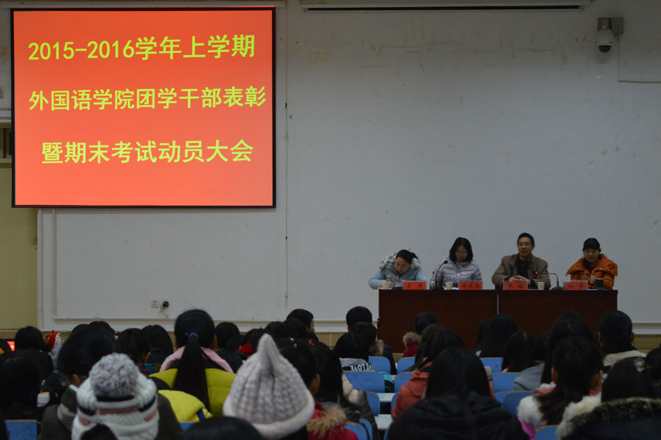 2015-2016学年上学期团学干部表彰暨期末考试动员大会在人文楼报告厅举行。91短视频