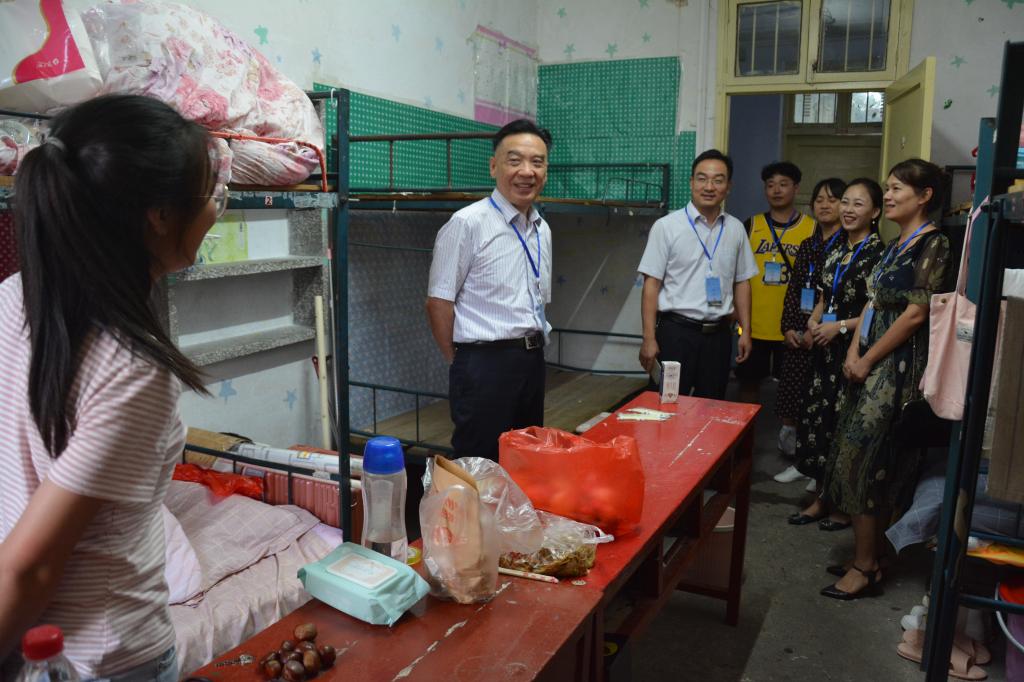 党委书记周学红、副院长朱丽、院党委副书记柏孟仁与新生班主任及全体辅导员一同走访新生宿舍,与同学们亲切交谈。周学红希望新生尽快适应新的环境,养成良好的生活和学习习惯,建立和谐友好的人际关系,并提醒同学们一定要增强安全意识,提高防范能力,注意防范校园网贷、电信诈骗、非法传销等安全风险,确保人身财产安全。