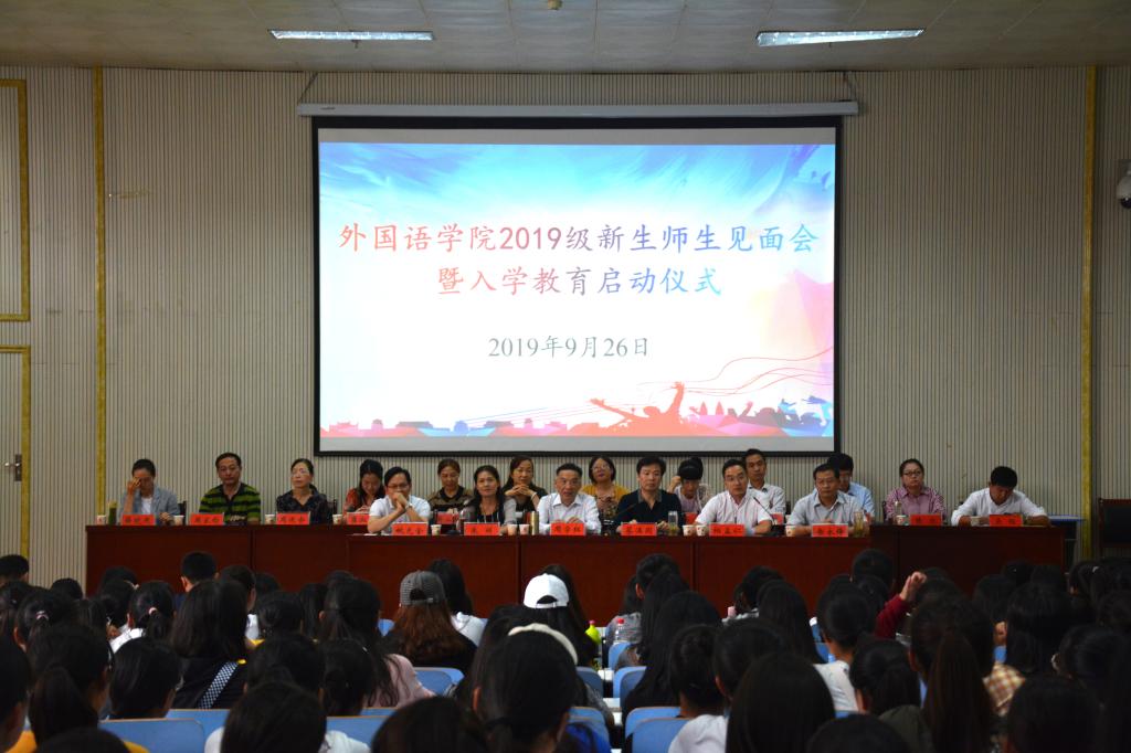 在人文楼报告厅举行2019级新生师生见面会暨入学教育启动仪式。院党委书记周学红,院长蔡满园,副院长朱丽,党委副书记柏孟仁,副院长姚光金,党委委员余永锋,部分教师代表和全体辅导员出席见面会,2019级全体新生参加见面会。会议由柏孟仁主持。