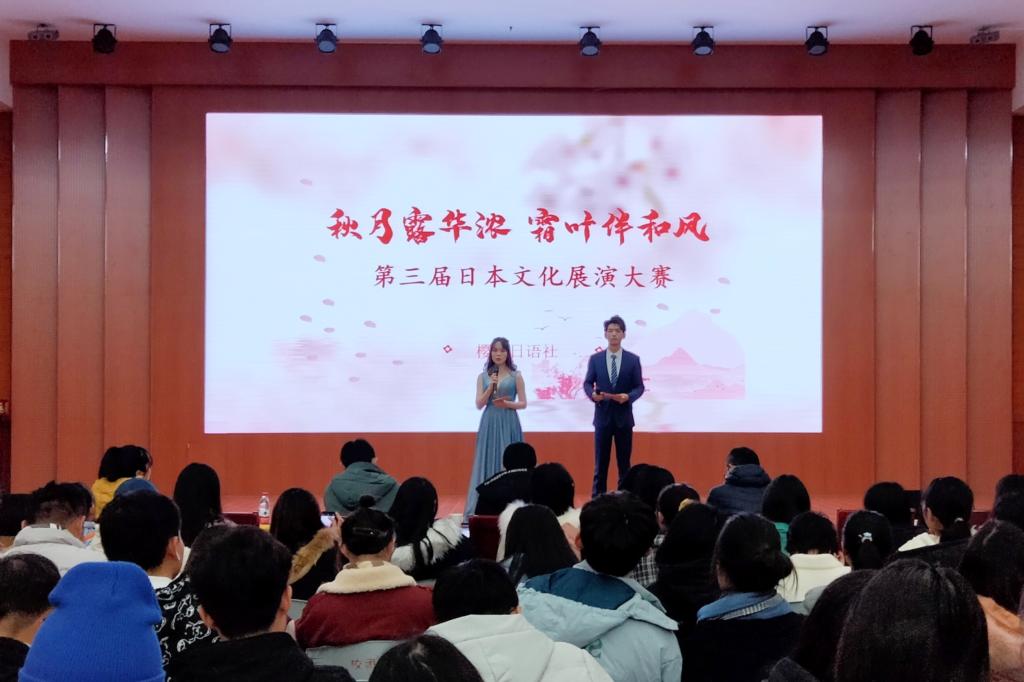 在逸夫楼报告厅举办第三届日本文化展演大赛。日语专业外教田口晴近,日语专业任课教师张鸿鹏博士、晏少杰老师、李静博士及91短视频