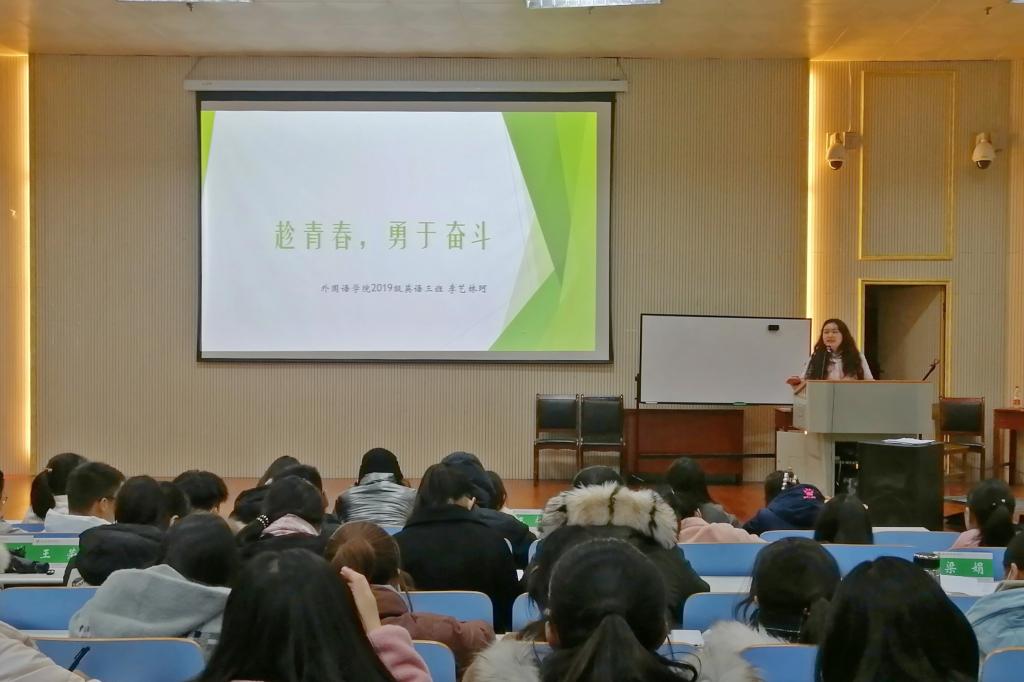 在人文楼报告厅举办明星故事分享会。优秀学生代表李新月、钱瑜、李艺林珂为2020级全体学生做经验分享。