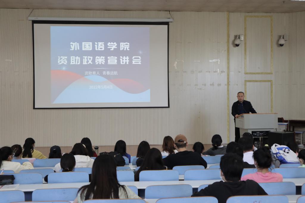 在人文楼报告厅召开2022年上半年国家资助政策宣讲会。学院党委副书记高彦伟、资助专员孔宪巍及2018级部分学生代表参加了宣讲会。