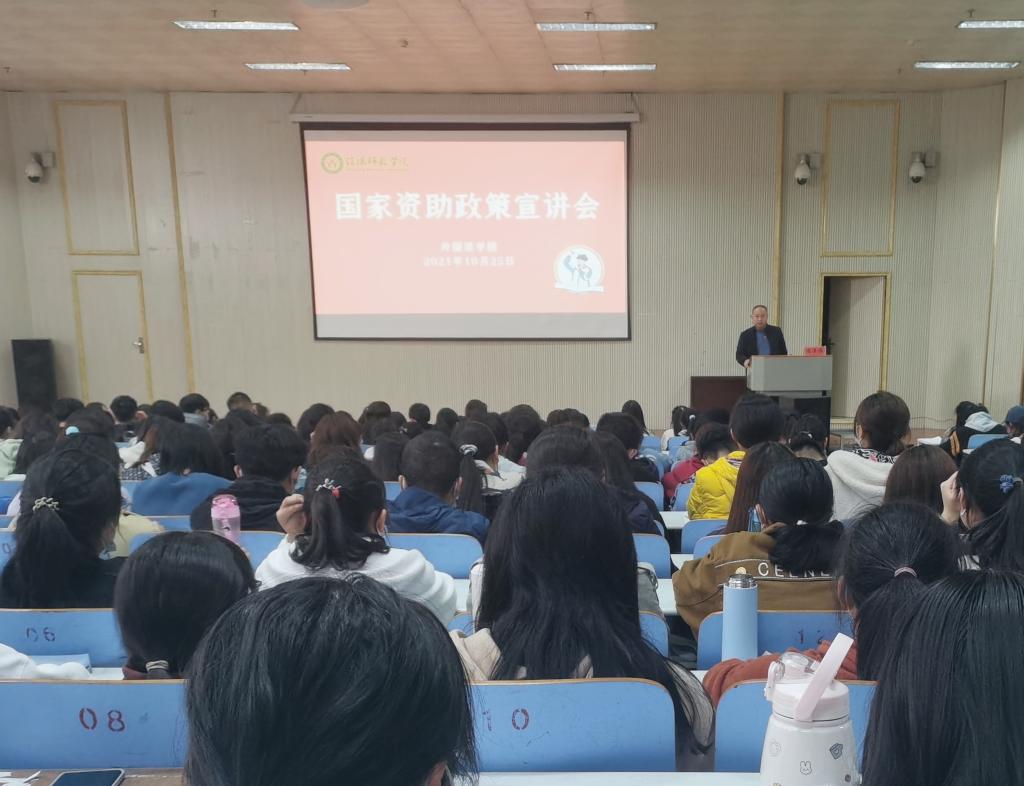 在人文楼报告厅召开2021年资助政策宣讲会,党委副书记高彦伟、资助专员孙桢桢以及2021级全体学生参加了此次宣讲会,宣讲会由孙桢桢主持。