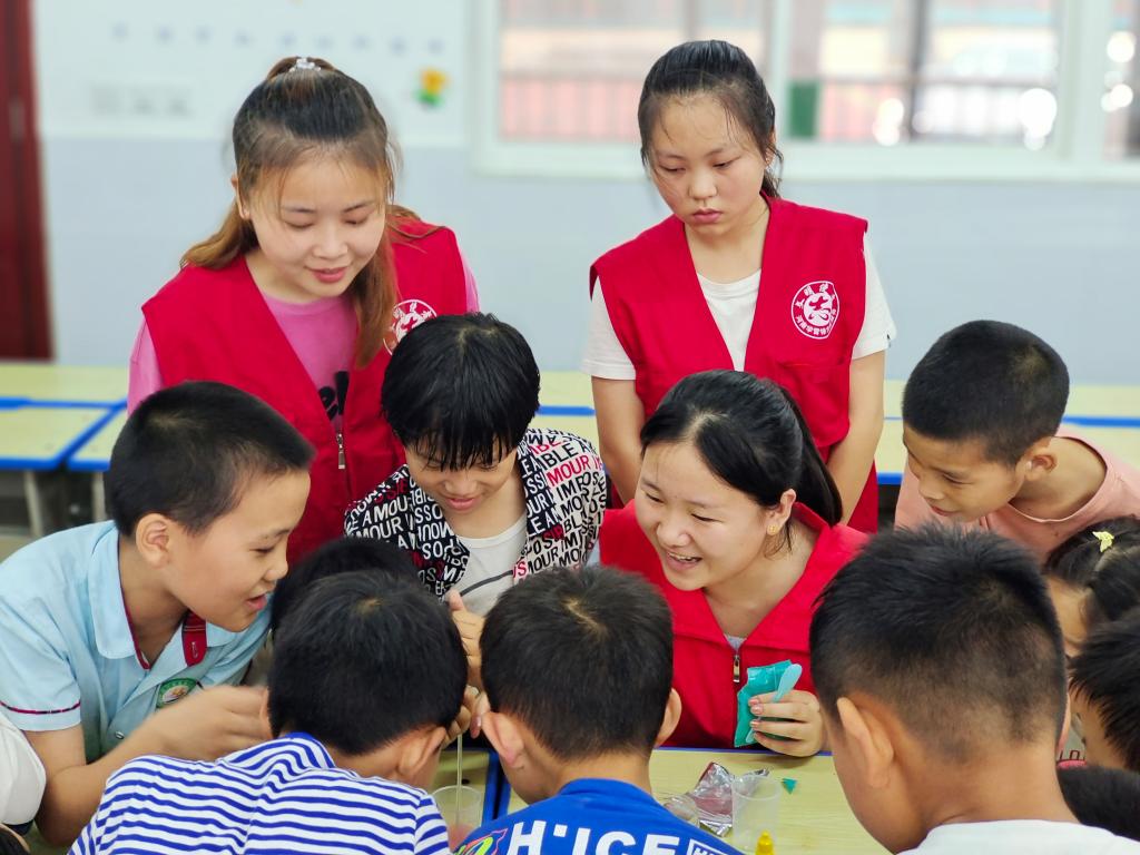 针对当地小学生英语功底薄弱问题,实践团队充分发挥英语师范专业特长,认真筹划,精心准备,开展英语辅导,在英语教学过程中增加趣味性,有效提高了孩子们学习英语的热情和兴趣。开展蔬菜换装、固体彩虹、隐藏的文字等科学小实验,让小学生们通过动手做实验切实感受科学的魅力,在他们心里种下希望的种子,鼓励他们努力学习,积极探索科学的奥秘。