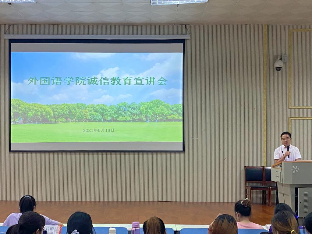 在人文楼报告厅召开诚信教育宣讲会。学院党委副书记柏孟仁,资助专员孙桢桢及2020级全体学生参加会议。会议由孙桢桢主持。