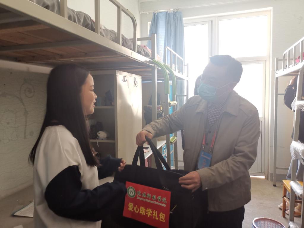 全体辅导员及新生班主任走访新生宿舍,与同学们亲切交谈,并代表学校为建档立卡学生送上“爱心助学礼包”和“防疫礼包”。周学红亲切询问了同学们的开学近况,希望新生们尽快适应新的环境,注重疫情防控,养成良好的生活和学习习惯,建立和谐友好的人际关系,并提醒同学们一定要增强安全意识,提高防范能力,注意防范校园网贷、电信诈骗、非法传销等安全风险,确保人身财产安全。
