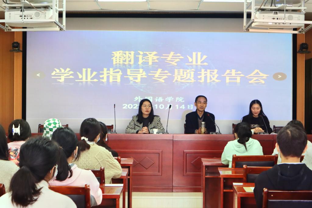 先后举办翻译、日语、英语专业学业指导专题报告会,各专业负责人、任课教师及2022级全体新生参加了报告会。