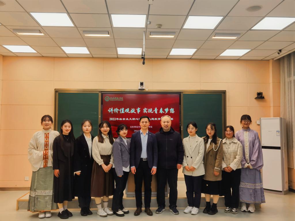 2022年“讲价值观故事 实现青春梦想”社会主义核心价值观主题教育比赛决赛在人文楼603教室举行。学院党委副书记高彦伟,学生党支部书记曹慧琳、孔宪巍、周旋、孙桢桢、郗金月参加此次活动。
