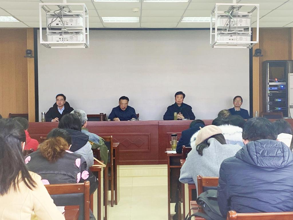 在人文楼六楼会议室召开2020-2021学年第二学期教职工大会。学院党委书记周学红主持会议。