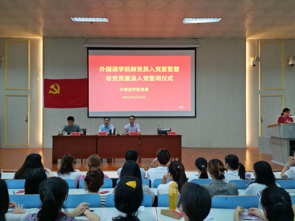在人文楼报告厅举行新党员入党宣誓暨老党员重温入党誓词仪式。学院党委书记周学红、党委副书记柏孟仁出席会议,各学生支部书记和全体学生党员参加了此次大会。会议由专职组织员陈龙主持。
