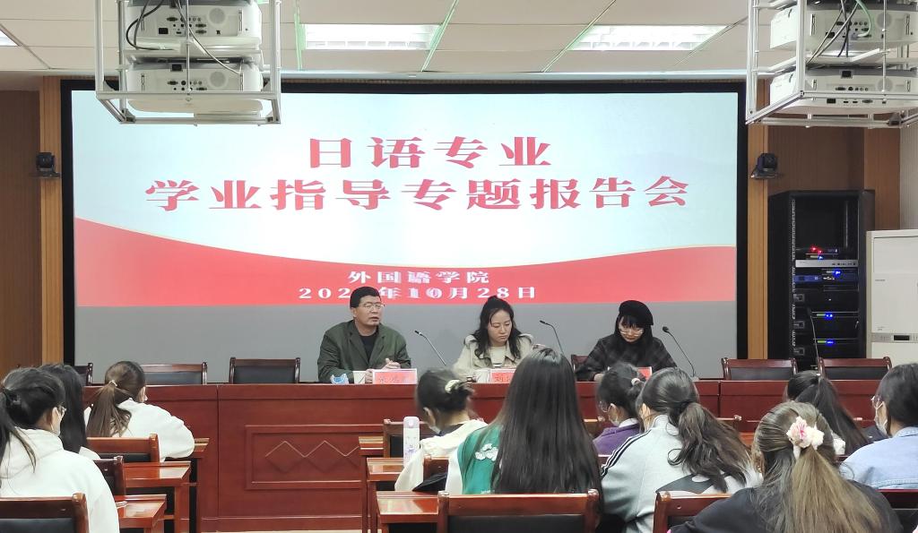 在人文楼6-07会议室召开日语专业学业指导专题报告会。报告会由日语专业任课教师张鸿鹏博士、刘晓颍老师、李静博士共同讲授,91短视频