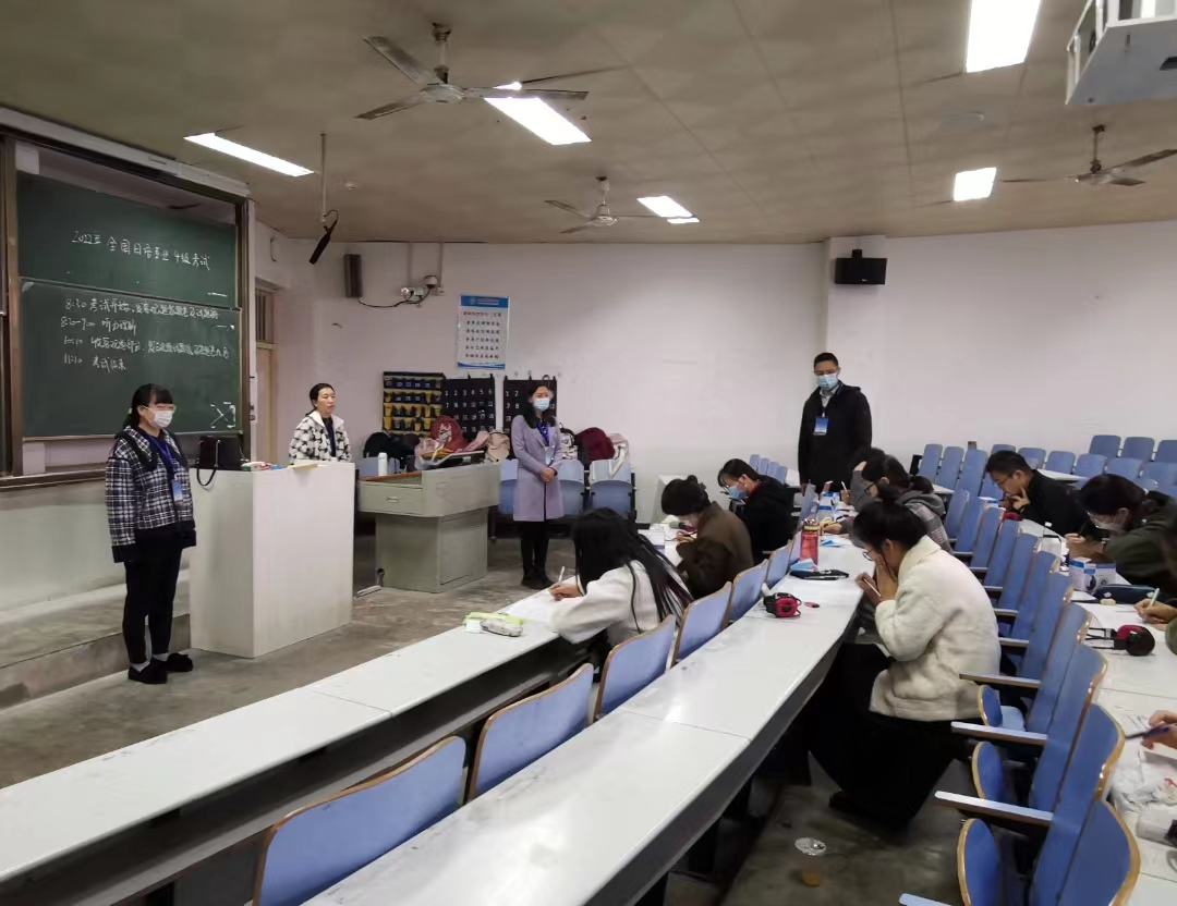 顺利举行高校日语专业四级考试。本次考试共有日语专业70名考生参加。学院党委书记陈铭,副院长郭敏莅临考场巡视检查考试进展情况。