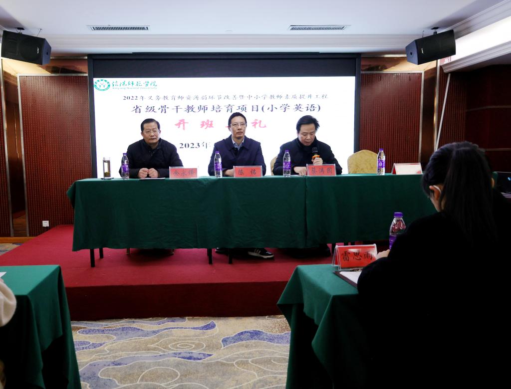 党委书记陈铭,院长蔡满园,副院长余永锋,小学英语班班主任宋冬梅、曹慧琳,初中英语班班主任雷思雨、黄艳文出席典礼,来自驻马店、济源、漯河、信阳、南阳等五个地区市基础教育一线的118名学员参加典礼。开班典礼由余永锋主持。