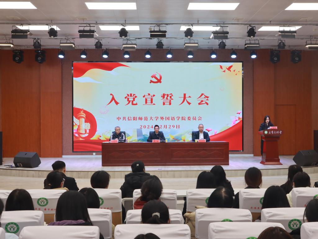 在人文楼报告厅召开新党员入党宣誓大会。学院党委书记陈铭,党委副书记高彦伟,党委委员、副院长吴向东出席会议,党委专职组织员孙桢桢,学生党支部书记孔宪巍、周旋、曹慧琳,全体学生党员参加会议。会议由吴向东主持。