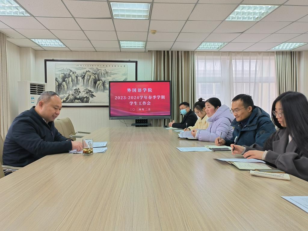 高彦伟简要总结了学院2023年学生工作,认真传达了学校2023年学生工作考核联评会议和2024年工作务虚会议精神,带领大家学习了学生工作有关规章制度。为做好新学期的学生工作,他提出四点要求:一是要有底线意识,要始终把学生的生命财产和心理健康放在各项工作的首位;二是要有一线意识,要深入课堂、深入宿舍、深入食堂、深入操场,努力做大学生成长成才的人生导师和健康生活的知心朋友;三是要有程序意识,程序是工作的指南,程序是工作的保障,要严格规范各项工作程序,确保各项工作高质量开展;四是要有品牌意识,要营造班班有特色、事事有亮点的良好氛围,深化学院“五育+比赛”协同育人学生工作品牌建设,更好促进学生德智体美劳全面发展。