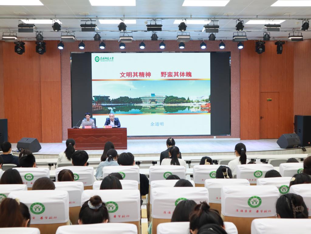 师生作了题为《文明其精神 野蛮其体魄》的专题报告。报告会在五育大讲堂举行,学院全体辅导员、学生干部,全体运动员参加了报告会。报告会由学院党委副书记高彦伟主持。