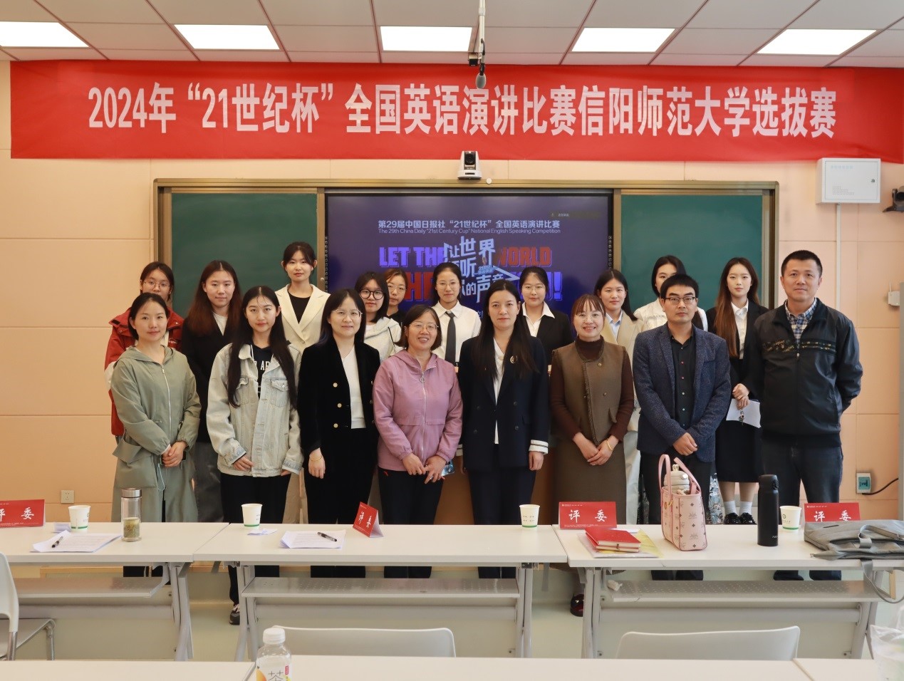 本次演讲以The revival of traditional culture(传统文化复兴)为主题。大赛旨在提高青年学子讲好中国故事的能力,加强我国国际传播能力建设、促进文明交流互鉴、推动构建人类命运共同体凝聚青春力量。比赛分为即兴演讲和现场问答两个环节。11名选手是从初赛中选拔胜出并晋级决赛。经过激烈的角逐,评委们本着公平竞争、客观公正的原则进行评审。最终,陈子田、李姿等两名同学获一等奖;田淼鑫、钟雨燕、管彤、张欣然等四名同学获二等奖;楚梓萱、李敏、姬梓涵、朱柳洁、吴梦姣等五名同学获三等奖。获得一等奖的选手将代表学校参加6月1日在郑州黄河科技学院举行的河南省总决赛。最后,评委周雪老师对此次比赛进行了点评和总结,指出选手的优缺点及改进建议。