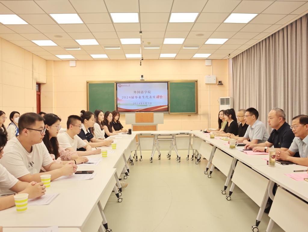 在人文楼603教室召开2024届毕业生代表座谈会。学院党委书记陈铭,党委副书记高彦伟,副院长吴向东、余永锋出席,全体辅导员和毕业生代表参加。会议由高彦伟主持。