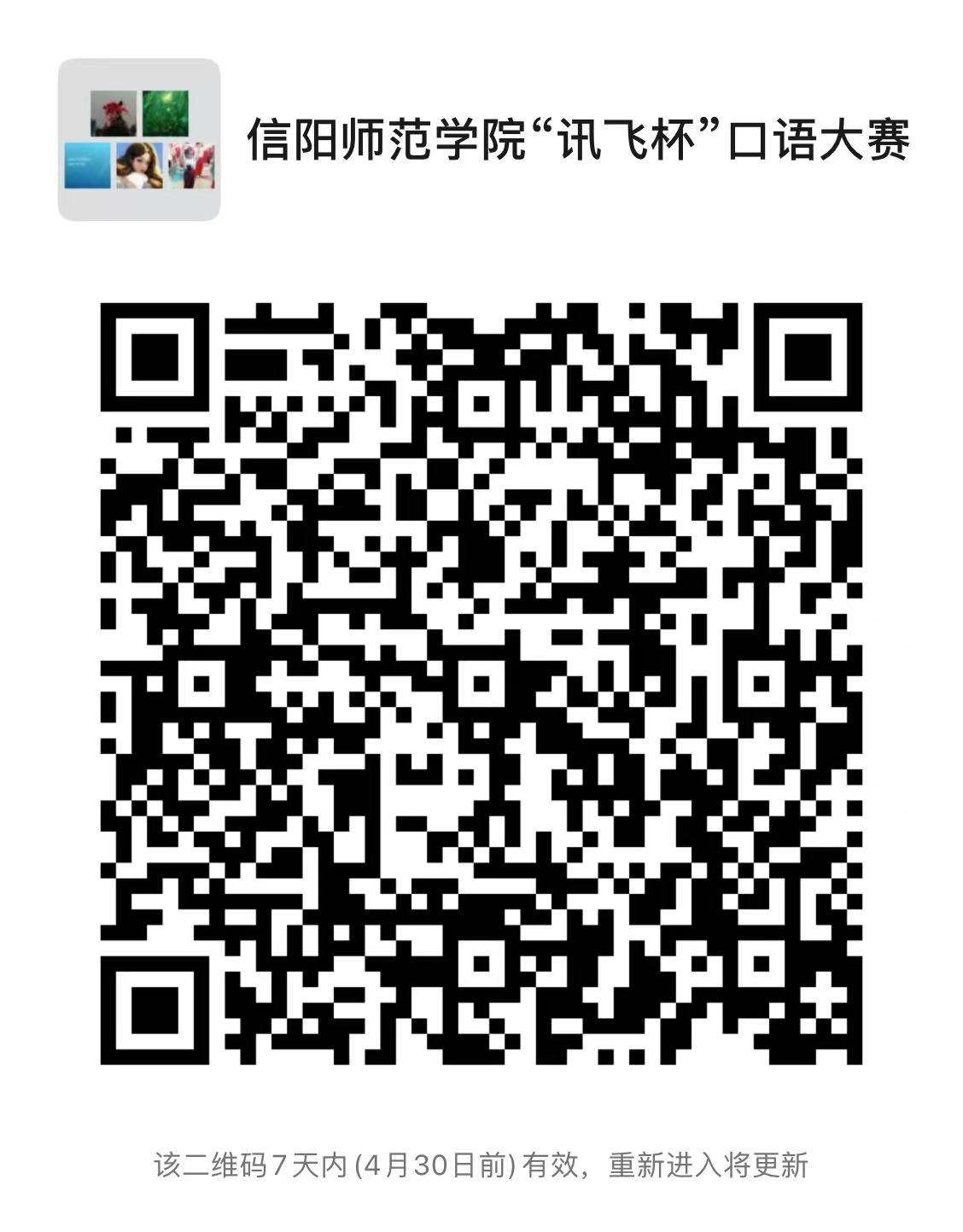 备注:请各学院于4月27日前,将参赛学生报名表(附件1)发送至电子邮箱[email protected]。学校将依据参赛学生报名表的信息,统一为参赛选手和指导教师申请参赛账号,敬请参赛选手加入信阳师范学院“讯飞杯”口语大赛微信群: