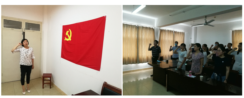 然后,进行新党员入党宣誓和老党员重温入党誓词。吕静同志进行入党宣誓,发表入党感言。