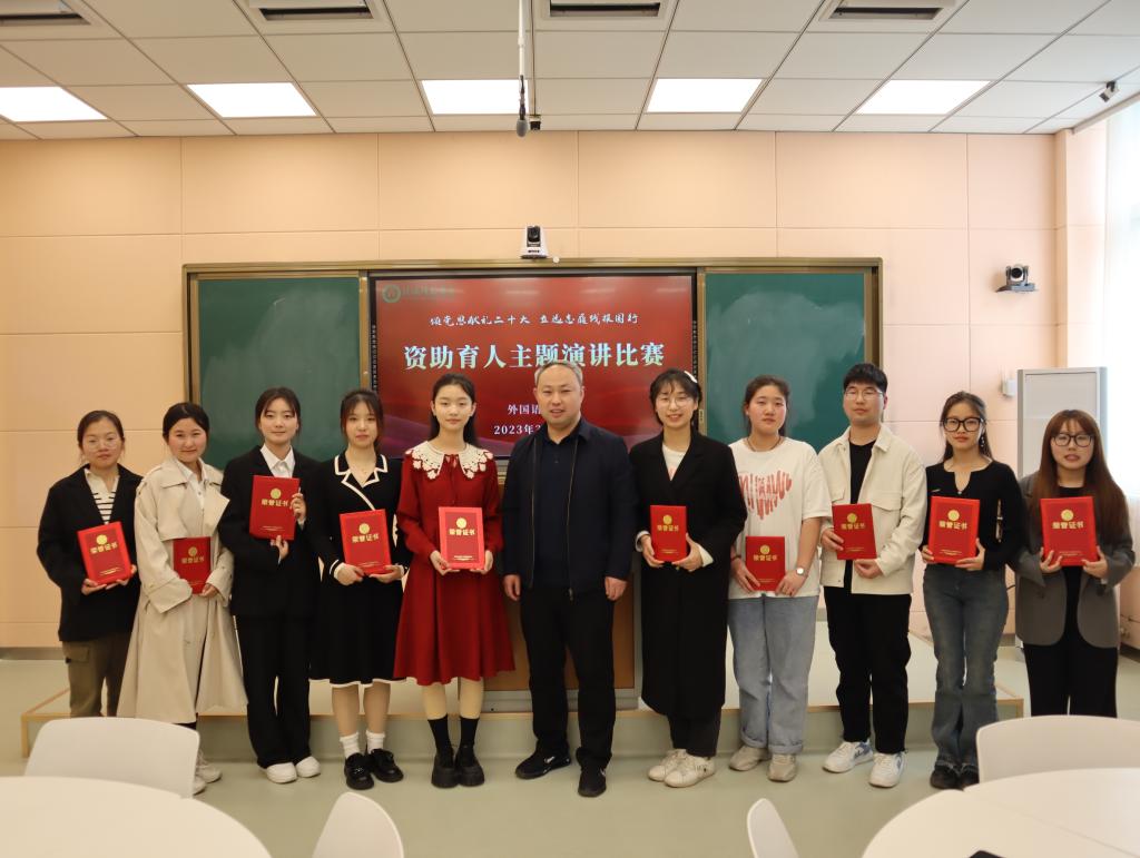 在人文楼603教室举办“颂党恩献礼二十大,立远志履践报国行”资助育人主题演讲比赛决赛。学院党委副书记高彦伟,辅导员孔宪巍、孙桢桢、郗金月参加了此次活动。