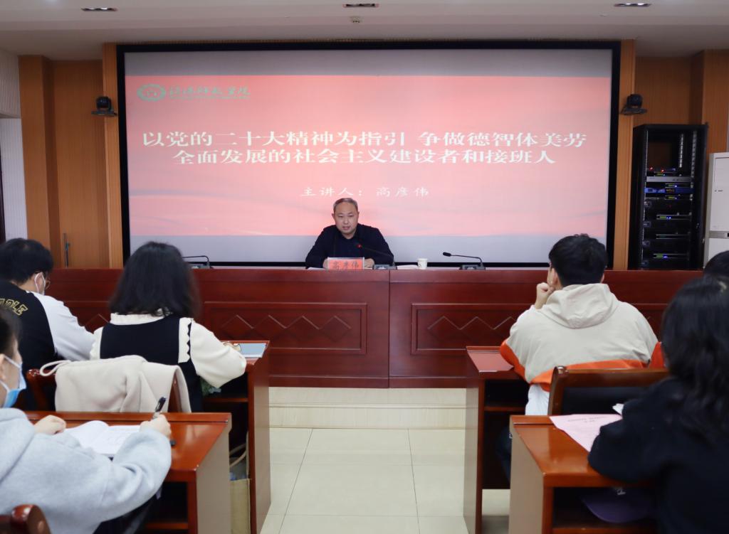 为深入学习宣传贯彻党的二十大精神,提高学生干部能力素质水平,3月7日下午,学院党委副书记高彦伟在人文楼6-07会议室作了题为“以党的二十大精神为指引,争做德智体美劳全面发展的社会主义建设者和接班人”的专题辅导报告,全体学生干部参加了报告会。会议由团委书记周旋主持。