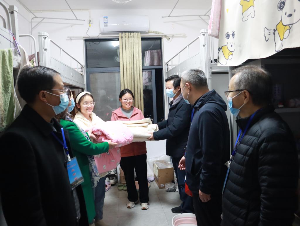 91短视频 领导深入学生宿舍为贫困生发放爱心棉被