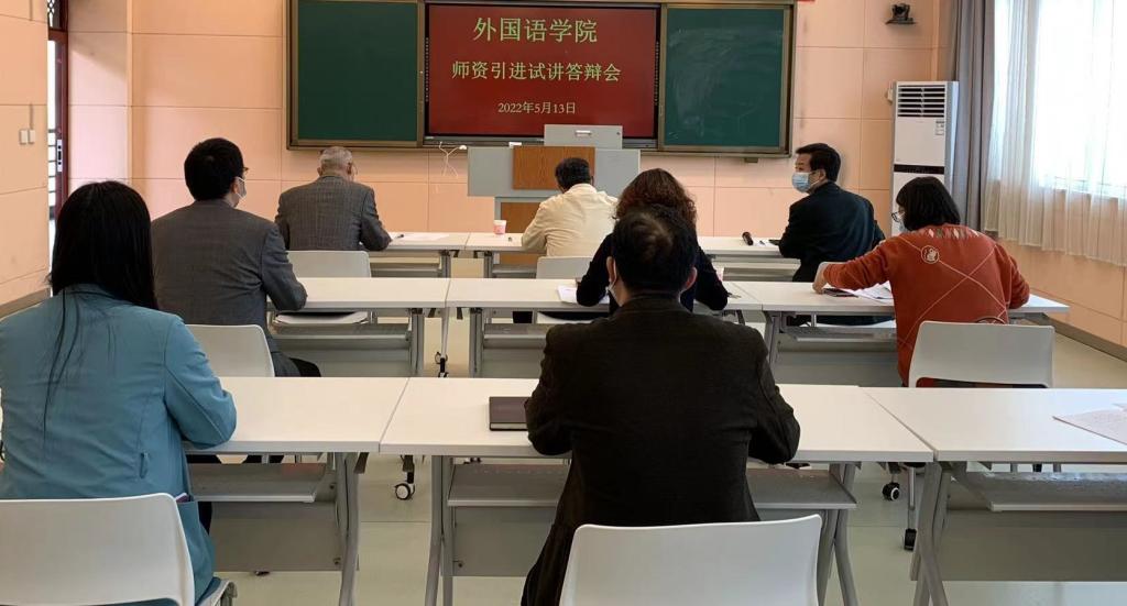 2022年高层次人才引进面试答辩会在人文楼507教室举行。人事处选派教学督导专家、学院全体党政领导、相关学科专家参加面试答辩活动,答辩会由副院长余永锋主持。