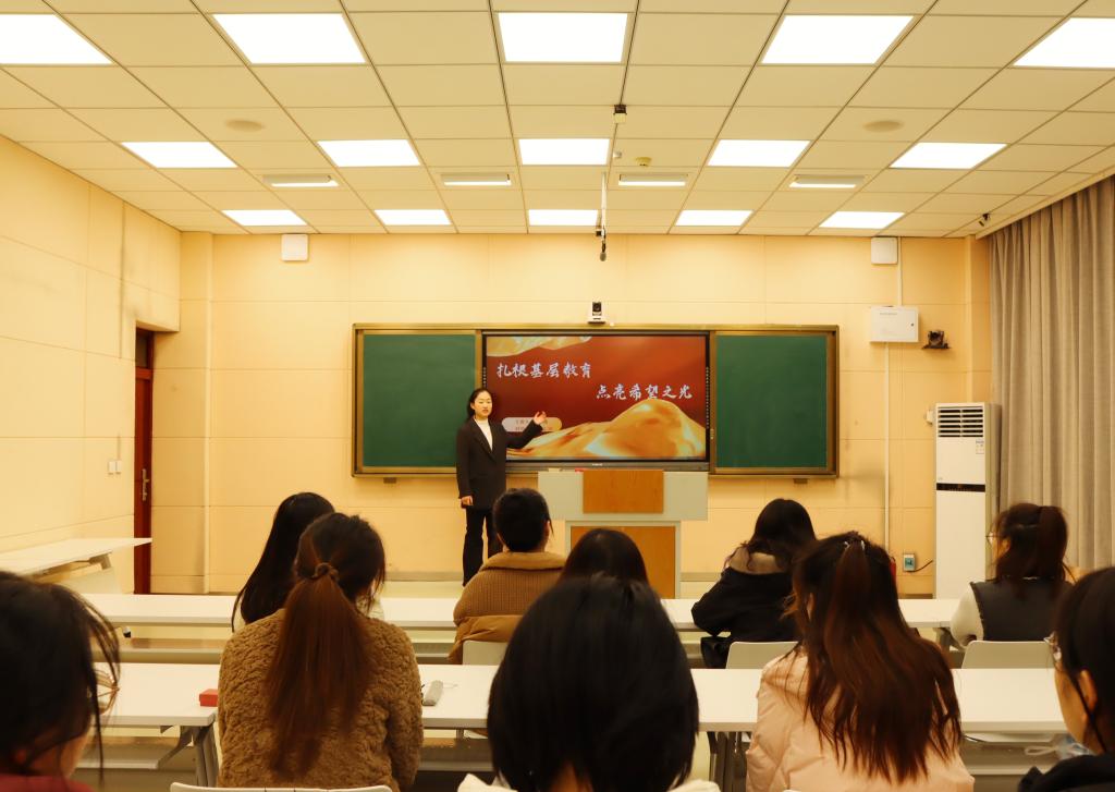 12月18日下午, 91短视频 于人文楼603教室举办举办“扎根基层教育,点亮希望之光”——“希望杯”演讲比赛初赛, 91短视频 老师孔宪巍、刘怡露、黄艳文、郗金月担任本次比赛的评委,参赛选手及部分学生代表参与观摩比赛。