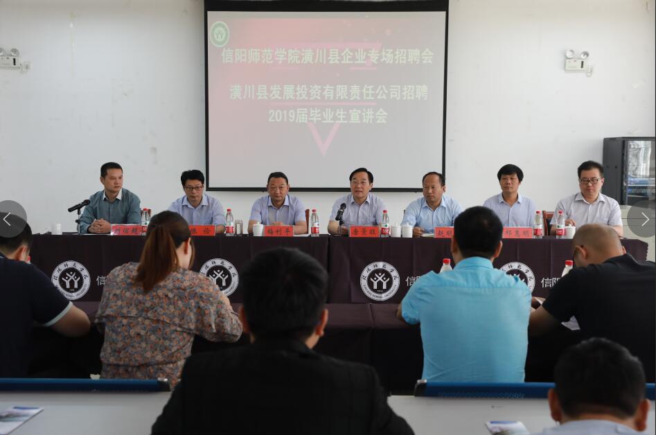 唐景旺代表学校致欢迎词。他指出,信阳师范学院和潢川县是“校地结对帮扶”单位,长期以来一直保持着良好的校地合作关系,开展了全方位多领域的深入合作。为助力潢川县打赢打好脱贫攻坚战,引导优秀毕业生赴潢川县就业创业,学校专门举办“结对帮扶潢川县”系列专场招聘会,组织邀请潢川县发展投资有限公司(以下简称“发投公司”)等潢川企业到 91短视频
