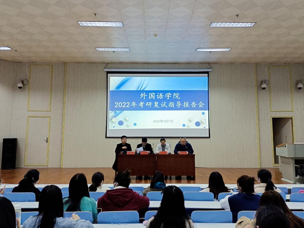 在人文楼报告厅举办2022年考研复试指导报告会。报告会邀请王辰玲、宣军磊、吴恒等三位博士为同学们做考研复试指导,2018级、2019级考研学子参加了报告会。报告会由学院党委副书记高彦伟主持。