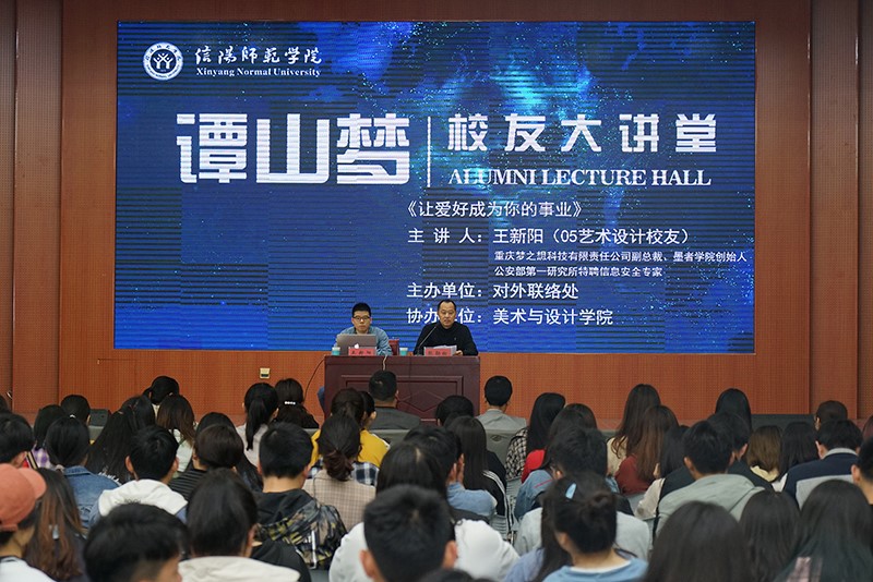 2005级艺术设计专业校友,重庆梦之想科技有限责任公司副总裁、公安部第一研究所特聘信息安全专家、墨者学院创始人王新阳应邀作了题为“让爱好成为你的事业”的创业励志报告。对外联络处、校团委、美术与设计学院等单位负责同志和师生代表400余人参加了报告会。报告会由对外联络处处长耿劲松主持。