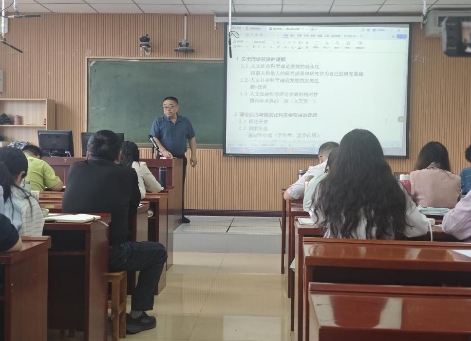 为切实提升学院的核心竞争力与学术影响力,推动学院科研水平与学科建设迈向新台阶,以实际行动献礼学校50周年校庆、为学校高质量发展贡献“外院力量”,10月2日至6日, 91短视频 在人文楼507室举办迎校庆系列学术讲座暨国社科选题论证会。活动邀请多位知名专家学者前来讲学。 91短视频 领导班子、青年教师、博士、硕士研究生和部分本科生参加了活动。活动由 91短视频 院长蔡满园教授主持。