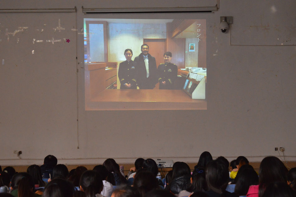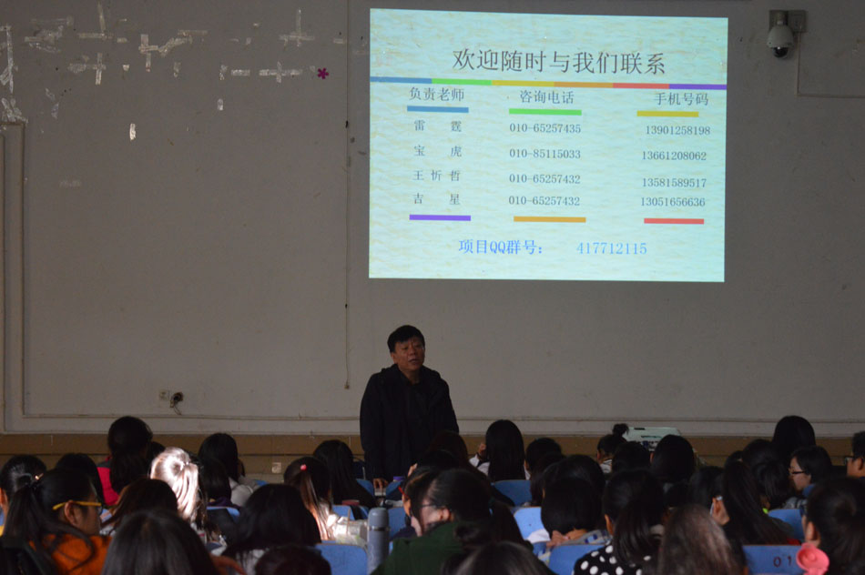 宣讲会开始,吉星首先以日本的自然背景、社会文化为切入点,结合精心制作的PPT从项目背景、项目详解、项目收获、中外服寄语四个方面详细介绍项目的实习环境、参加资格等,令同学们对其有了初步了解。随后,雷霆指出了开展赴日社会实践项目的在于为中国在校学习日语专业的大学生提供一个踏上日本国土、体验日本生活文化、提高日语能力、进入日本企业、与日本同事以及来自其他国家的国际学生并肩工作的机会,全面提高和锻炼学生的综合能力。活动在热烈的掌声中圆满结束。