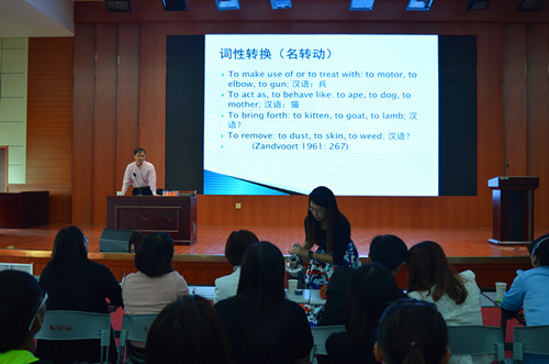 邀请,上海外国语大学博士生导师束定芳教授在逸夫楼报告厅做了题为“语言的转喻性”的专题学术报告。91短视频